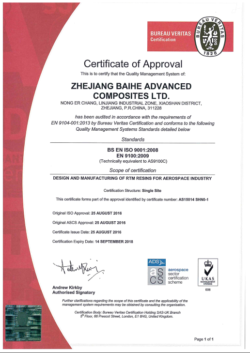 浙江百合航太復合材料有限公司成立于2014年,是集先進復合材料產品開發設計、生產、銷售、服務于一體的高新技術企業, 主要產品有復合材料液體成型樹脂、碳纖維、玻璃纖維和芳綸纖維預浸料、以及結構粘合劑膠膜等。